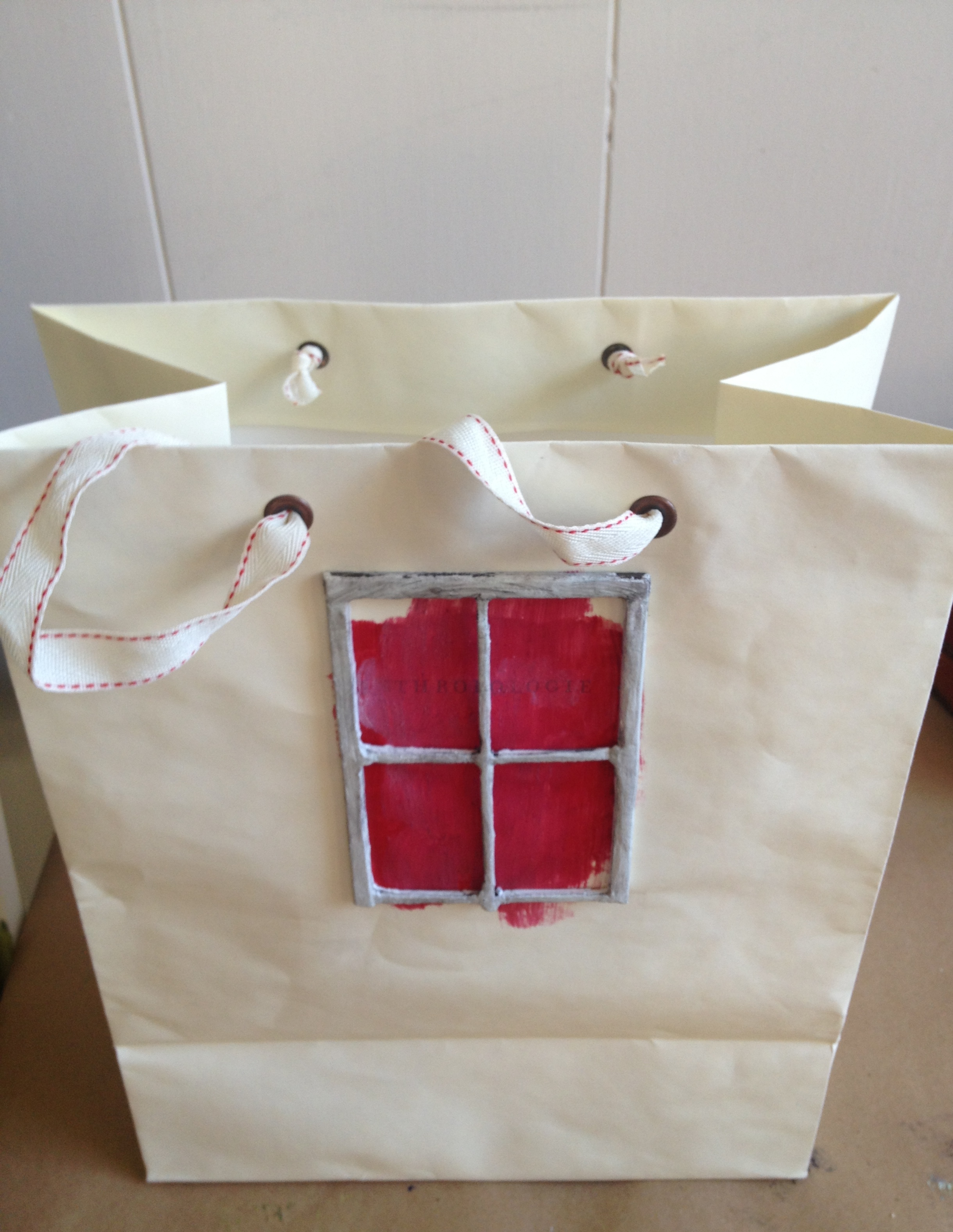 I have three or four clear plastic shoe boxes that hold a variety of things and provide a great source of energy and imagery when I remember to open them and bring new eyes to them. A full mold of my son’s upper teeth, taken before years and years of orthodontia… a piece of dried bamboo…dice…old baby blocks. And then there it was — a strange Polaroid of kids dressed in cap and gown from a volunteer project I did about fifteen years ago. Better yet — an old crazy quilt square with a black back begging out for embroidery. A dictionary so old the yellowed paper was as thin as tissue. Scraps of balsa wood to make a window, a ladder. Hours flew by. I trusted the process, the vision, knew that I would find the right things and the place them in the right way. Finally, an old Anthropologie bag provided a great way to package the gift. I couldn’t wait for her to unwrap it.